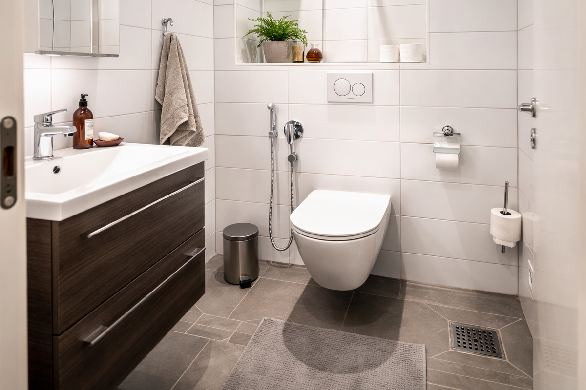 В скандинавских странах распространена компактная альтернатива биде — гигиенический душ (или «личный шланг»), устанавливаемый рядом с унитазом. Это позволяет интегрировать водную модель в стандартную европейскую планировку «сухого» санузла. Примерно 80% населения используют воду, в то время как 20%, преимущественно старшего поколения, придерживаются только бумаги.