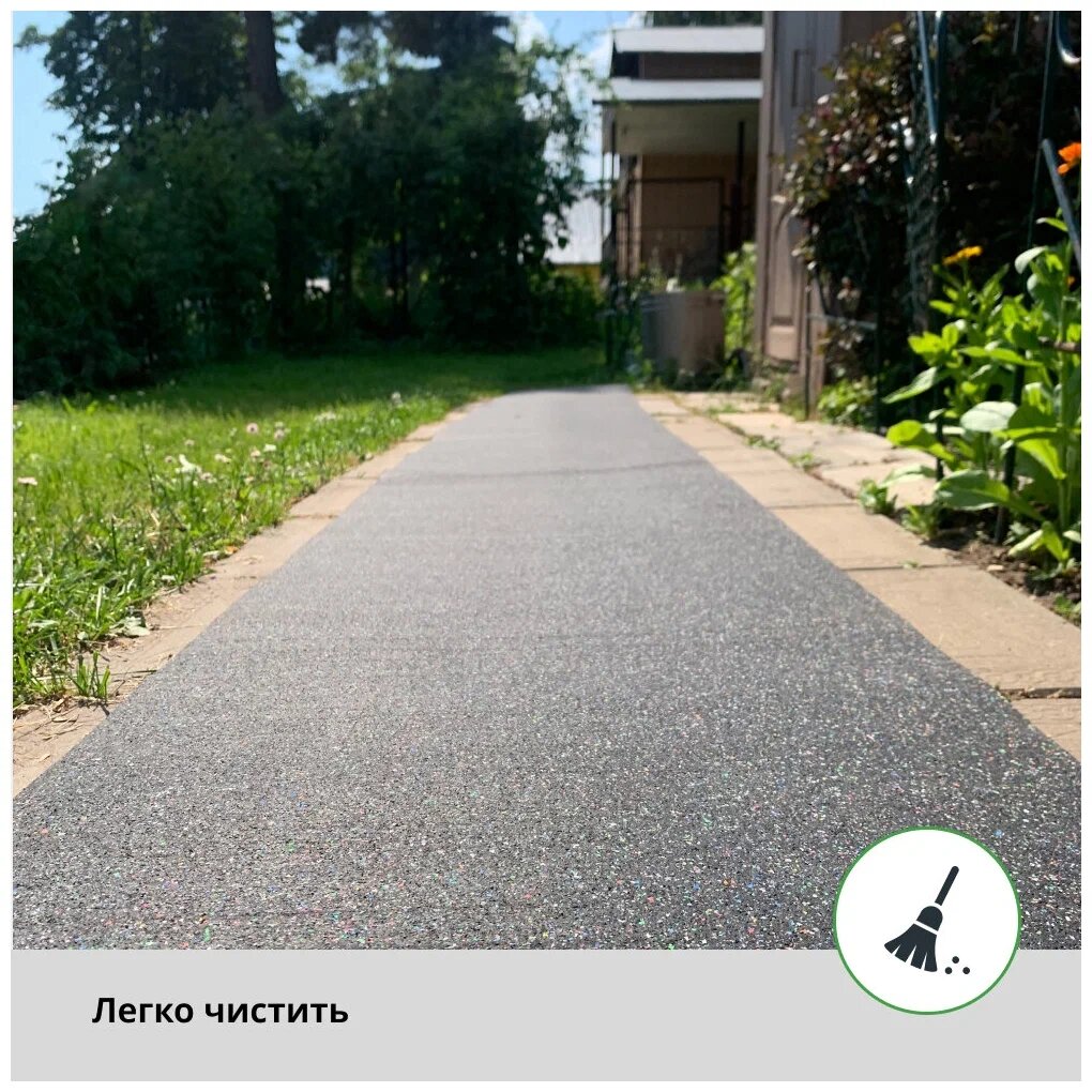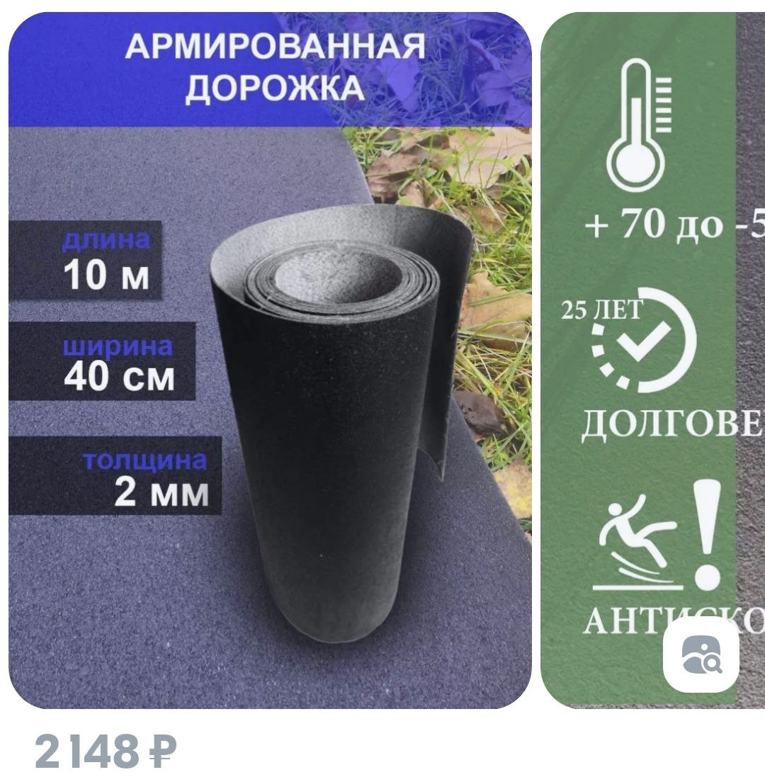 Этот продукт является результатом переработки старых автомобильных шин. Дорожка из резиновой крошки стилизована под асфальт, имеет ширину 40 см. В продаже чаще всего встречаются рулоны длиной 2.5 и 5 метров. Например, цена 5-метрового рулона в одном из крупных строительных гипермаркетов может достигать 5000 рублей, в то время как на онлайн-маркетплейсах аналогичный товар можно найти на 30-40% дешевле.