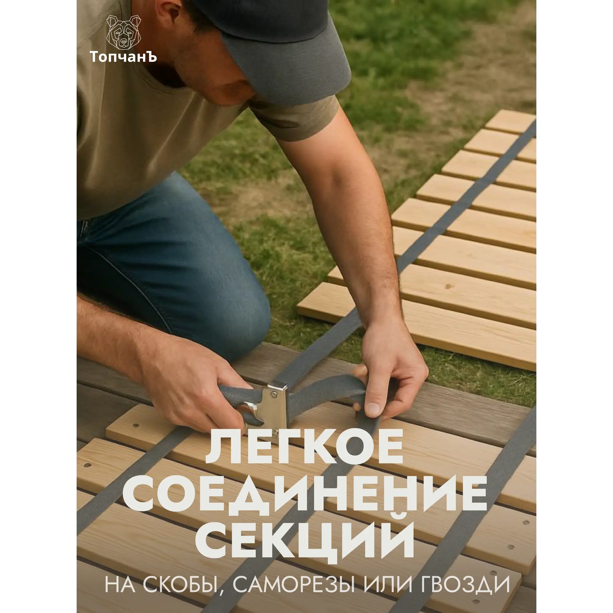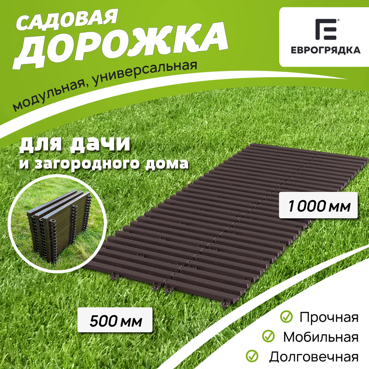 Изготовлена из прочного полипропилена — того же материала, что и популярные готовые грядки и садовые доски. Стандартная ширина секции — 50 см. Стоимость одного квадратного метра такого покрытия также находится в районе 1000 рублей. Главное преимущество — модульность: систему можно собирать как конструктор, создавая тропинки нужной длины и конфигурации. Производитель предлагает несколько цветовых решений: от классического «венге» до яркой бирюзы или оранжевого.