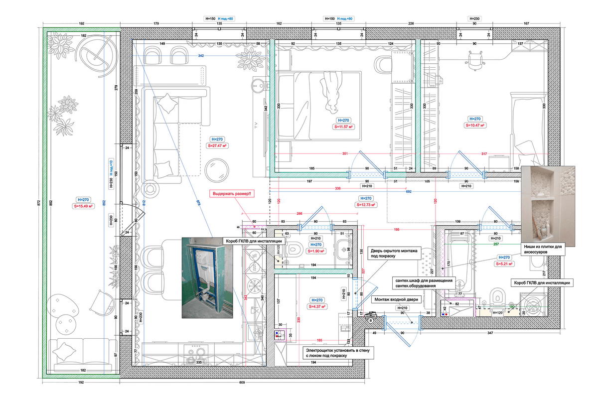 - Точные технические листы — планы электрики, сантехники, отопления, теплых полов и монтажа кондиционеров.