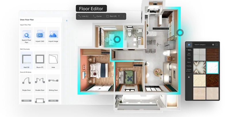 Kujiale — крупнейшая в Китае AI-платформа для полной автоматизации проектного цикла. Система загружает обмеры, после чего генерирует варианты планировок с учетом функциональных связей и нормативов.