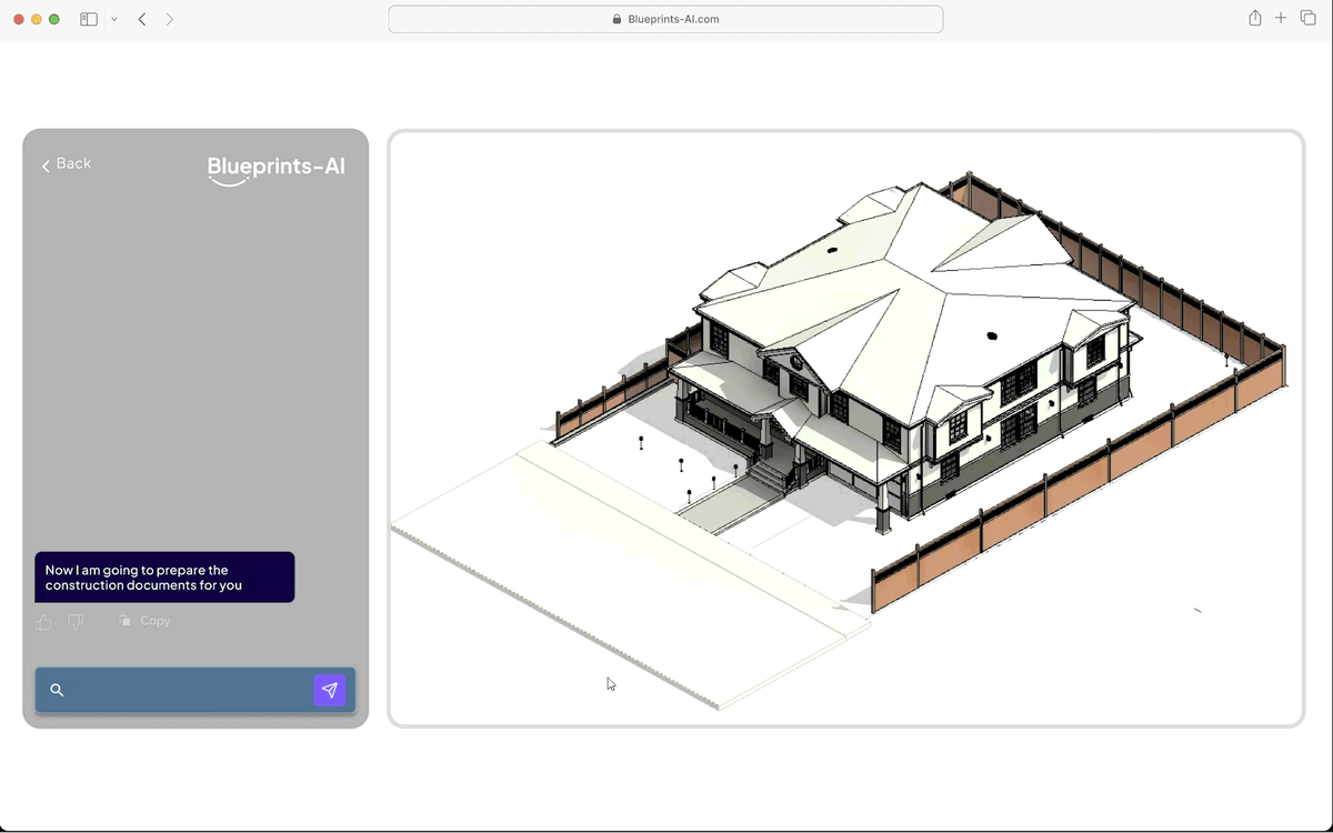 Blueprints AI — одна из первых платформ, где ИИ создает не просто планировку, а автономную систему черчения на основе миллионов архитектурных данных. Он формирует чертежи с элементами, требуемыми для строительства.