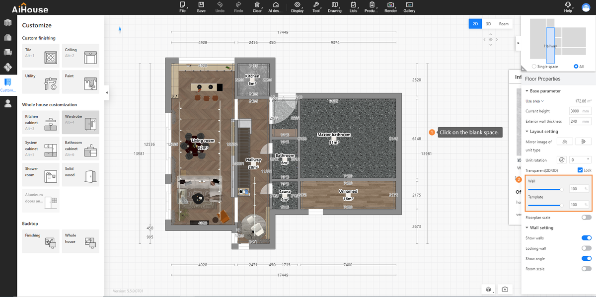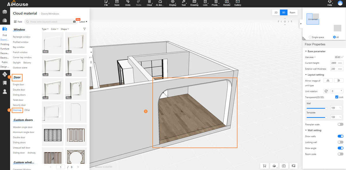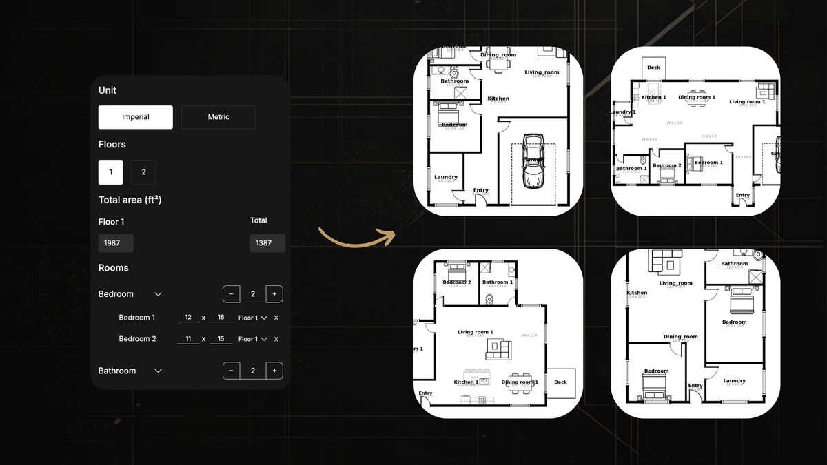 - ИИ ведет логическую генерацию с соблюдением параметров: количество комнат, этажей, функций.