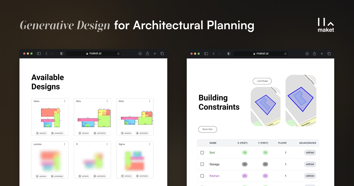 Maket — ИИ-генератор планировок по техзаданию: задаете метраж и размеры, получаете варианты для редактирования.