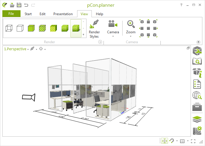 pCon.planner переводит проект в среду реальных предметов с точными габаритами. Работает с каталогами производителей, проверяет проходы и эргономику.