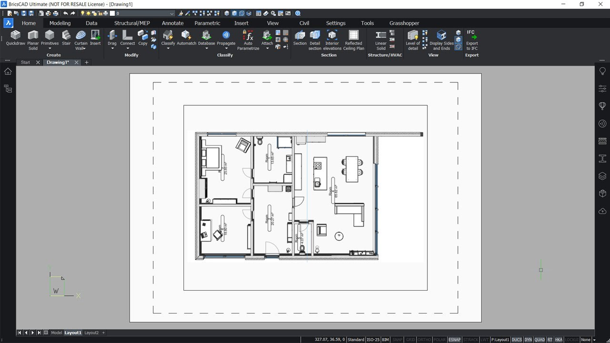 BricsCAD BIM — выбор для работы с DWG. Позволяет превращать 2D-план в BIM-модель, сохраняя контроль над геометрией.