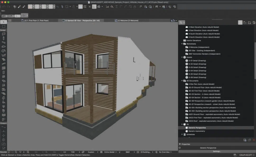 Сильная сторона — баланс гибкости и структуры. Проект можно насыщать деталями, не ломая модель. Archicad выбирают за ясную графику и аккуратную подачу.