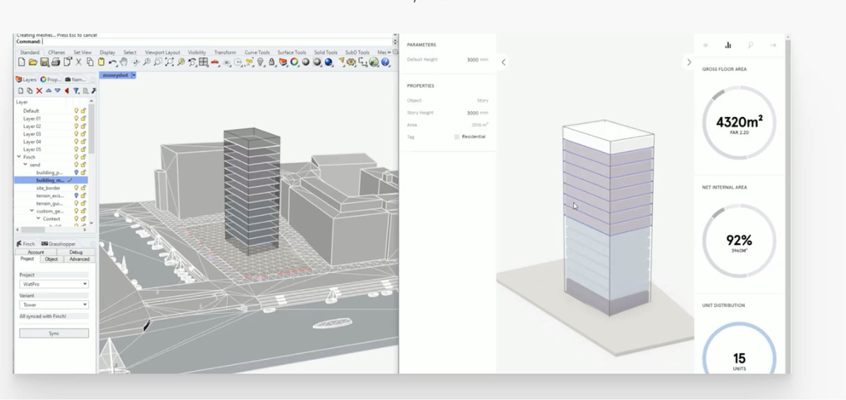 Finch — генеративная среда, где план собирается как система ограничений. AI Co-Pilot генерирует планировки, позволяя добавлять стены, двери и мебель.