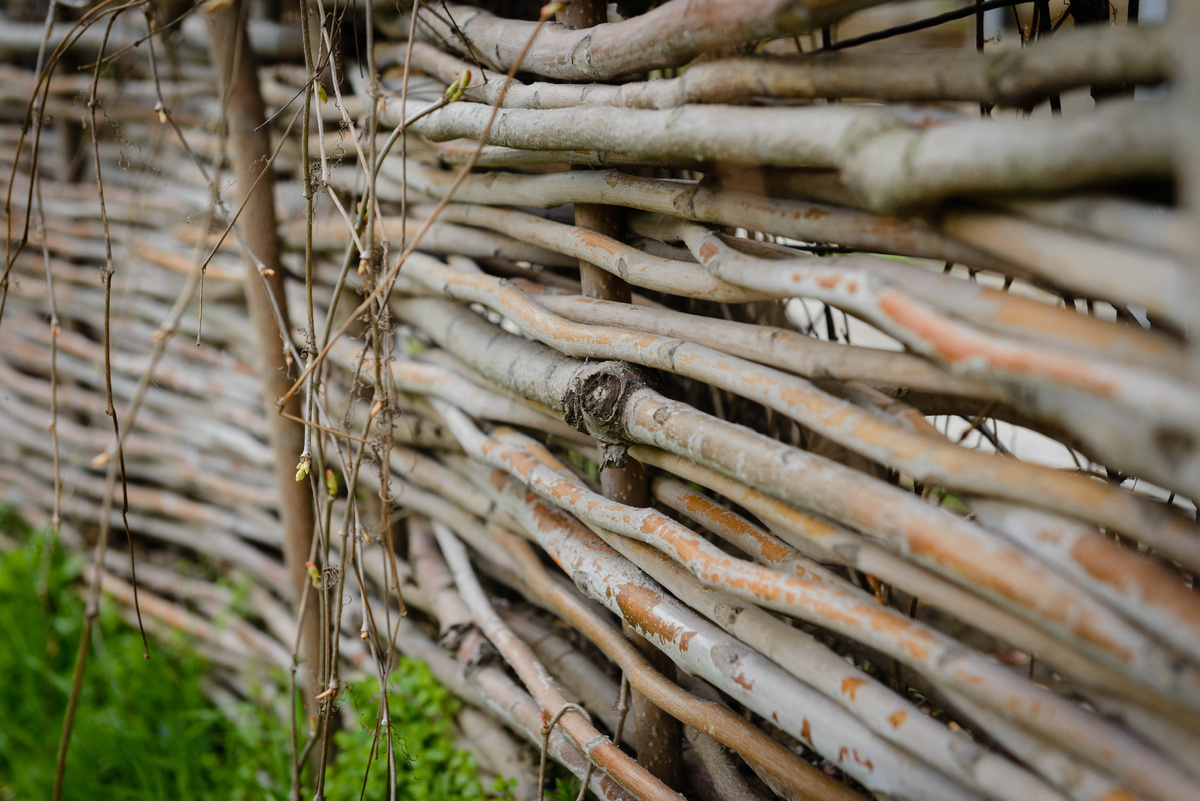 Пожалуй, самый экономичный вариант. Более толстые ветви используются как вертикальные стойки, а гибкие тонкие плетутся между ними горизонтально, создавая подобие традиционного плетня. Такое ограждение обладает особым деревенским шармом.