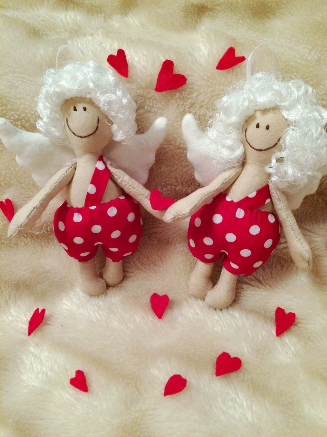 Классические символы Дня влюбленных — ангелочки и купидоны — особенно понравятся романтичным особам. Их можно сшить из атласа, кружева или связать. Такая поделка станет изящным напоминанием о ваших чувствах и украсит интерьер.