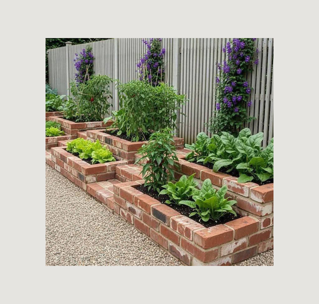 - Для ягодников и пряных трав: камень или кирпич — красиво и тепло.