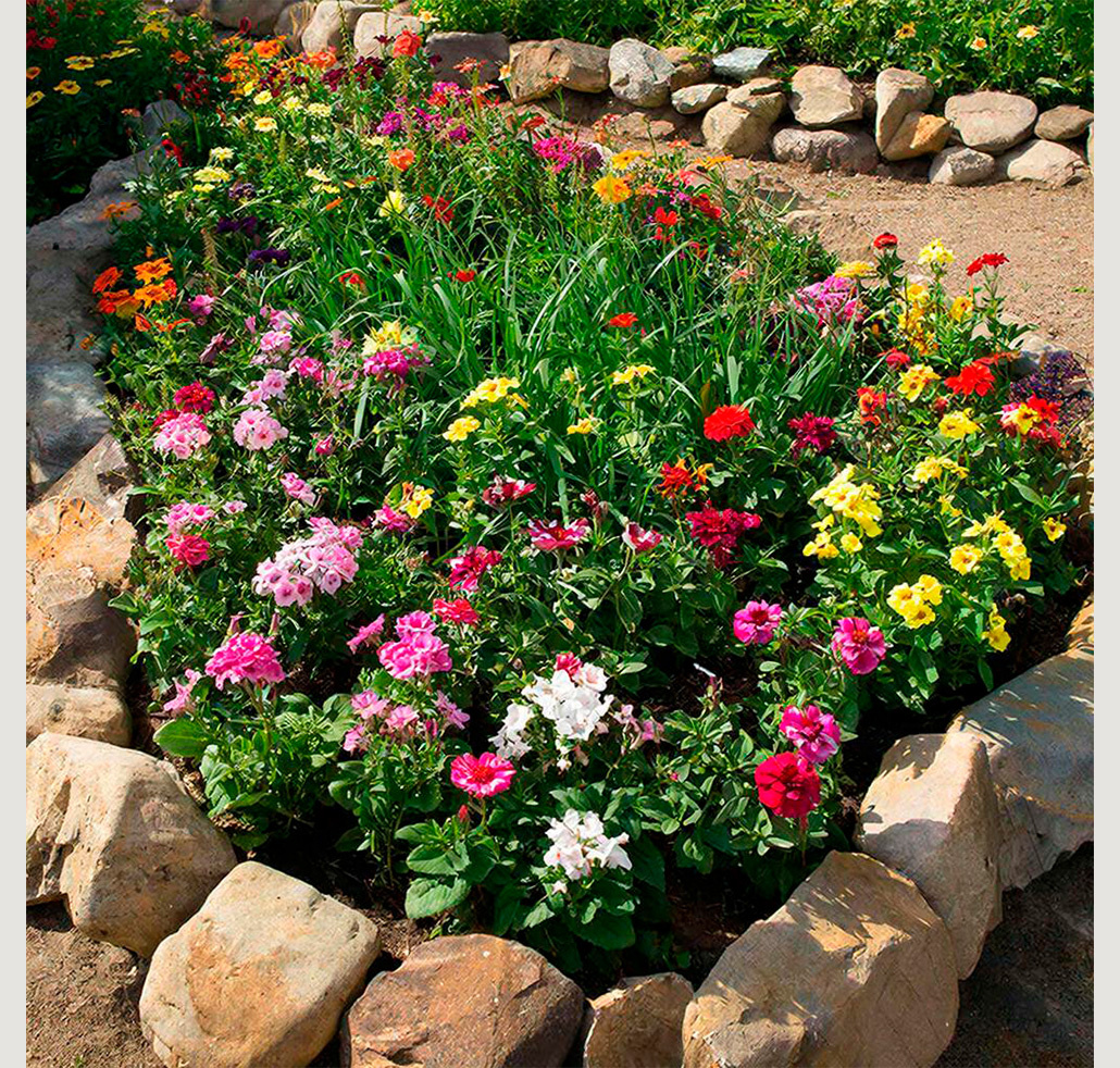 Каменные бортики — любимая тема для тех, кто ценит естественный вид сада.