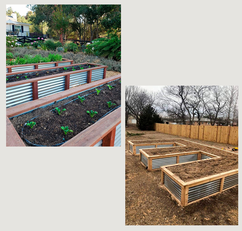 - Для «рабочих» овощных грядок: оцинкованный металл или композитные доски.