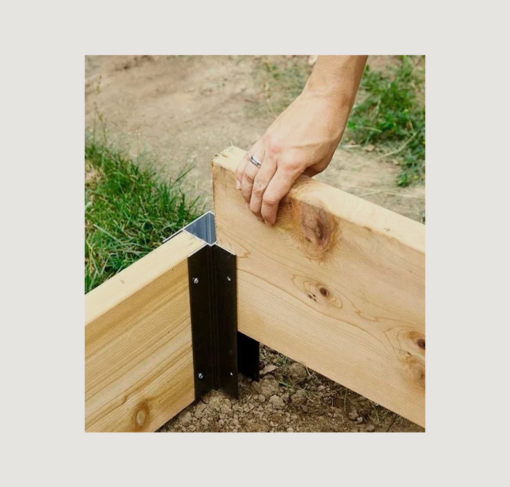 - Укреплять углы: уголки, колышки, металлические профили. Угол — самое слабое место любой грядки.